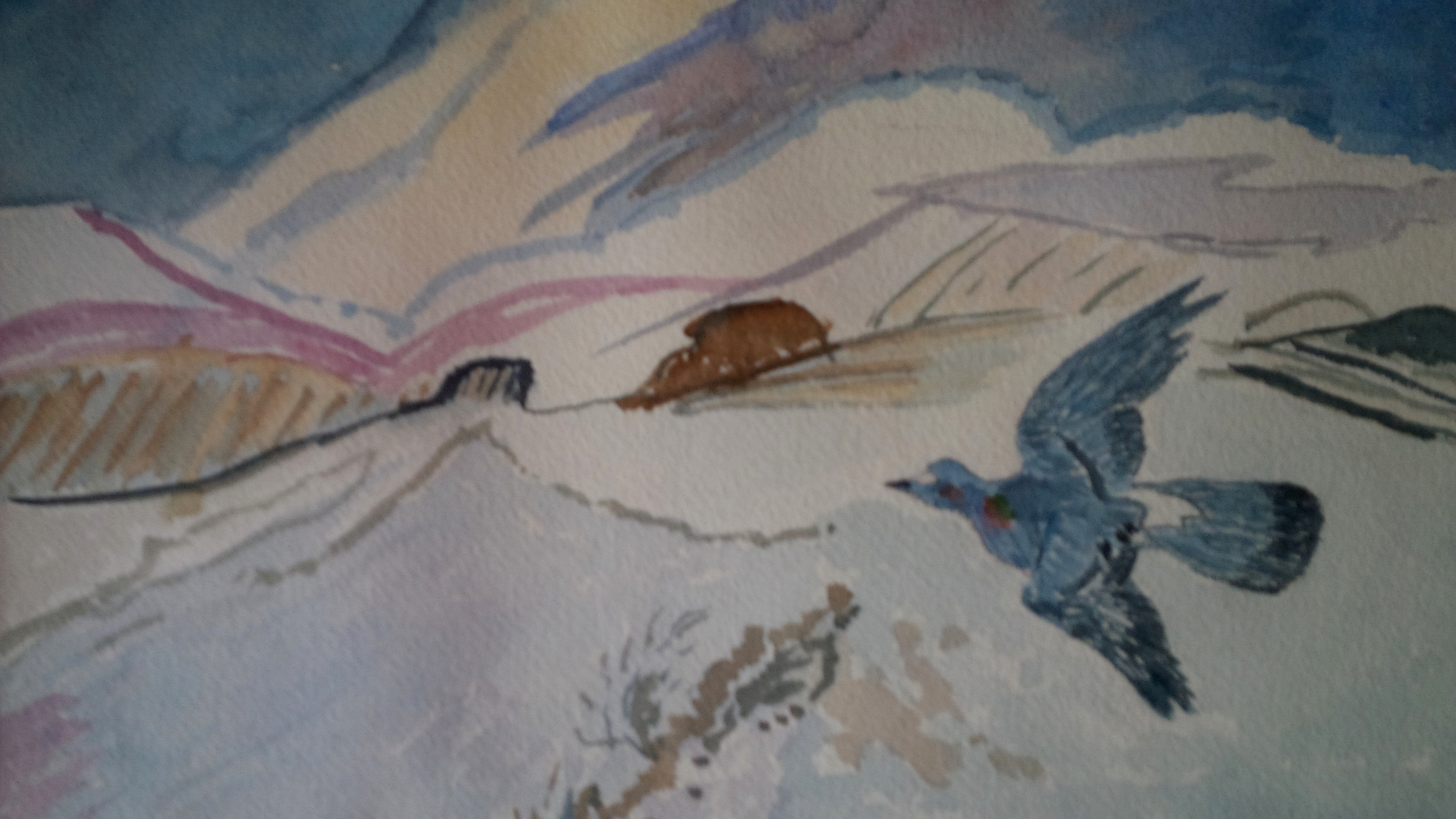 Amid her life's coda my angelic mother-in-law, Marian Lokvam, water-colored an image I imagine as her soul flying towards eternity. Her angel greets you with the gift of her art.