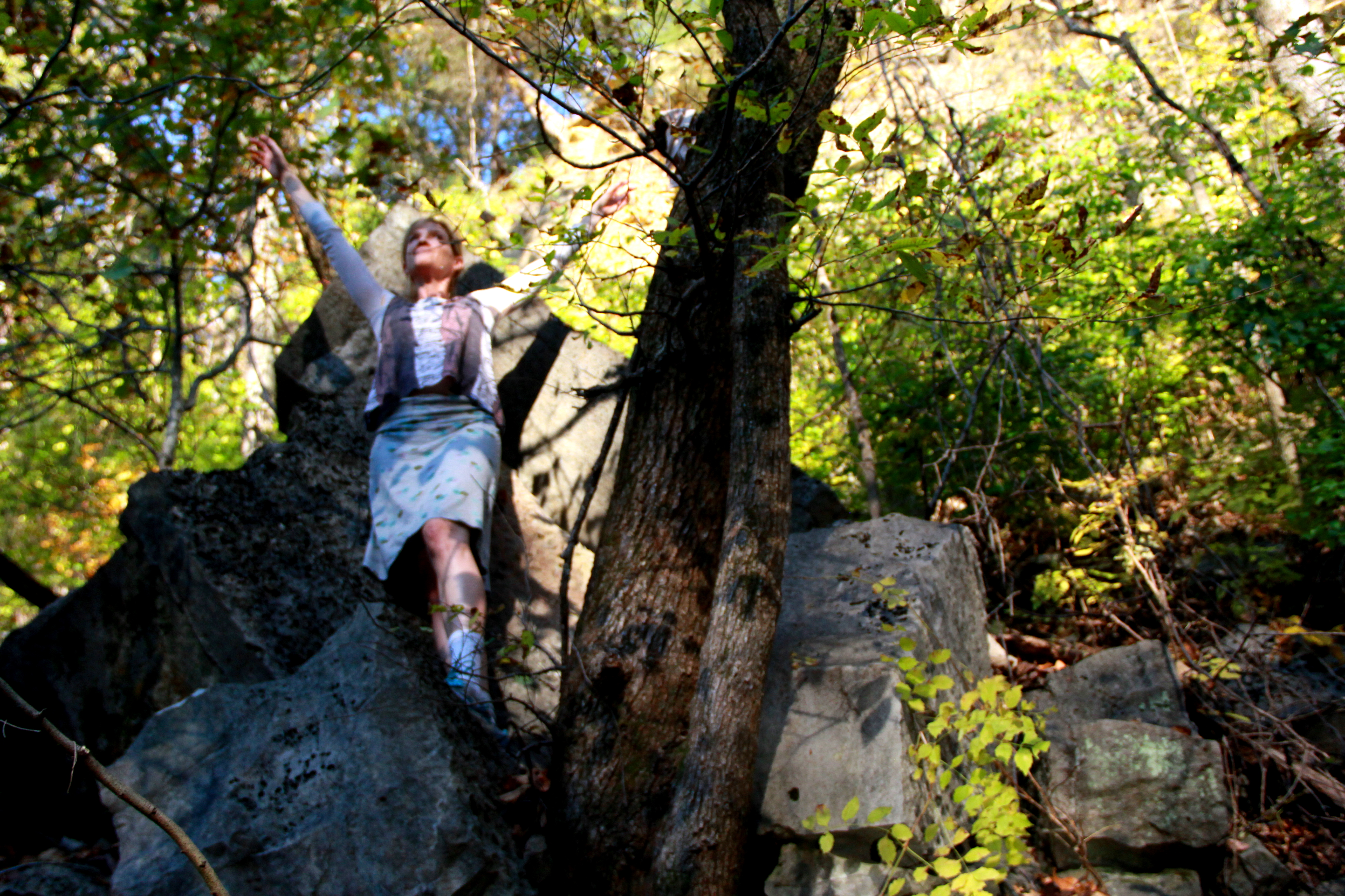 Open celebration   Standing atop a hill amid rocks she celebrates life with open arms. That is how we rejoice – by opening ourselves.