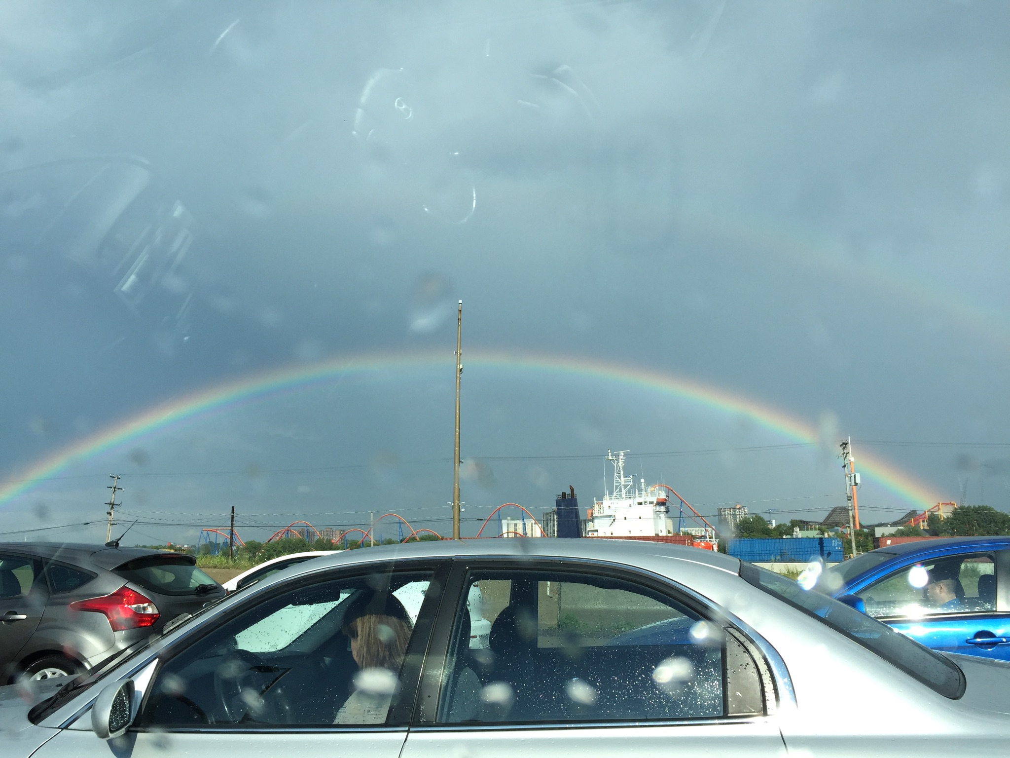 Any science teacher can explain double rainbows. None can explain why such sights (including the way the car shape mimics the rainbows) move the soul.