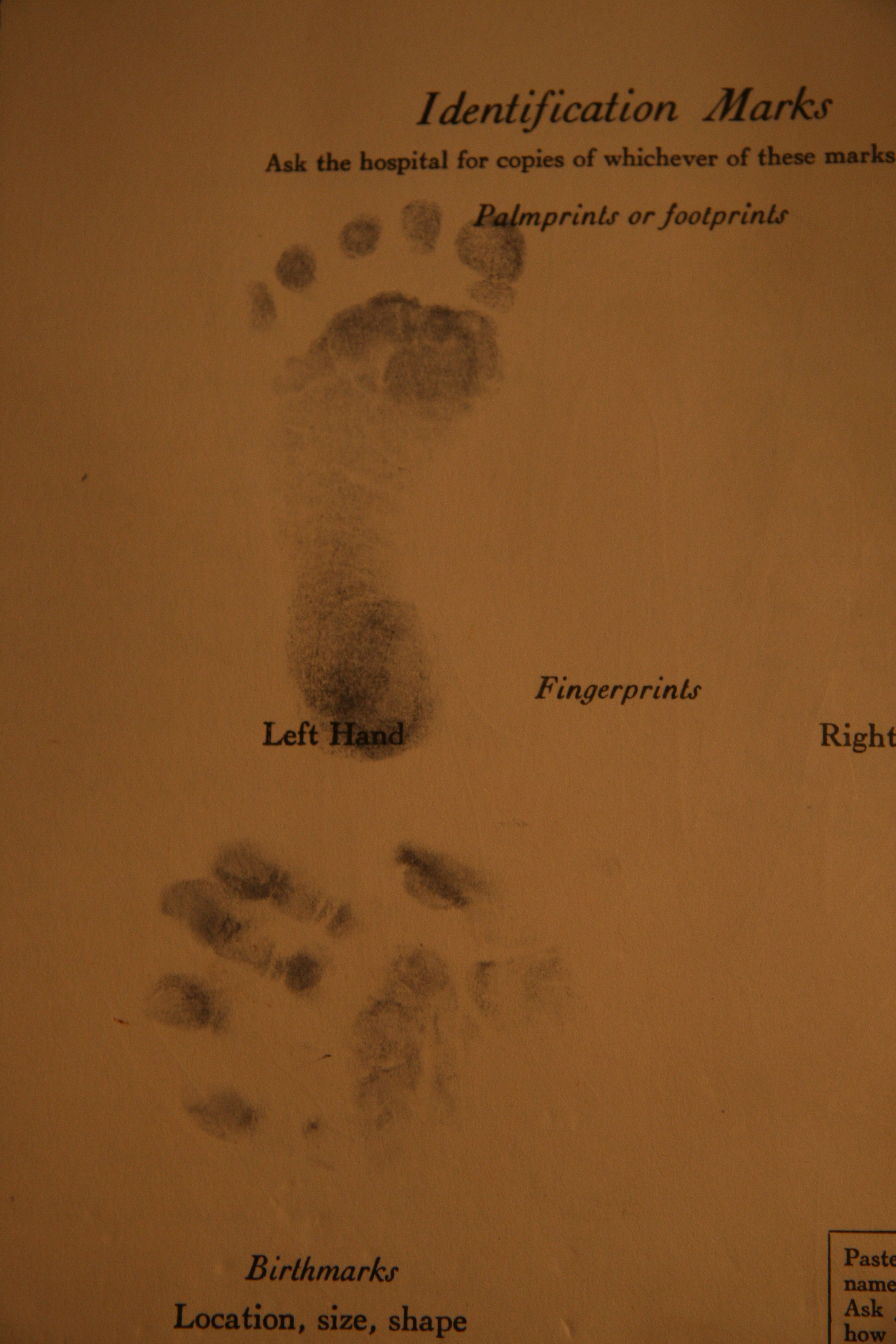It is a ritual of childbirth. Shortly after we enter this world a nurse takes our left foot, inks it & presses it onto a sheet of paper. Thus the loops, ridges & whorls that become part of our body's signature etch their first marks into the landscape of this world.