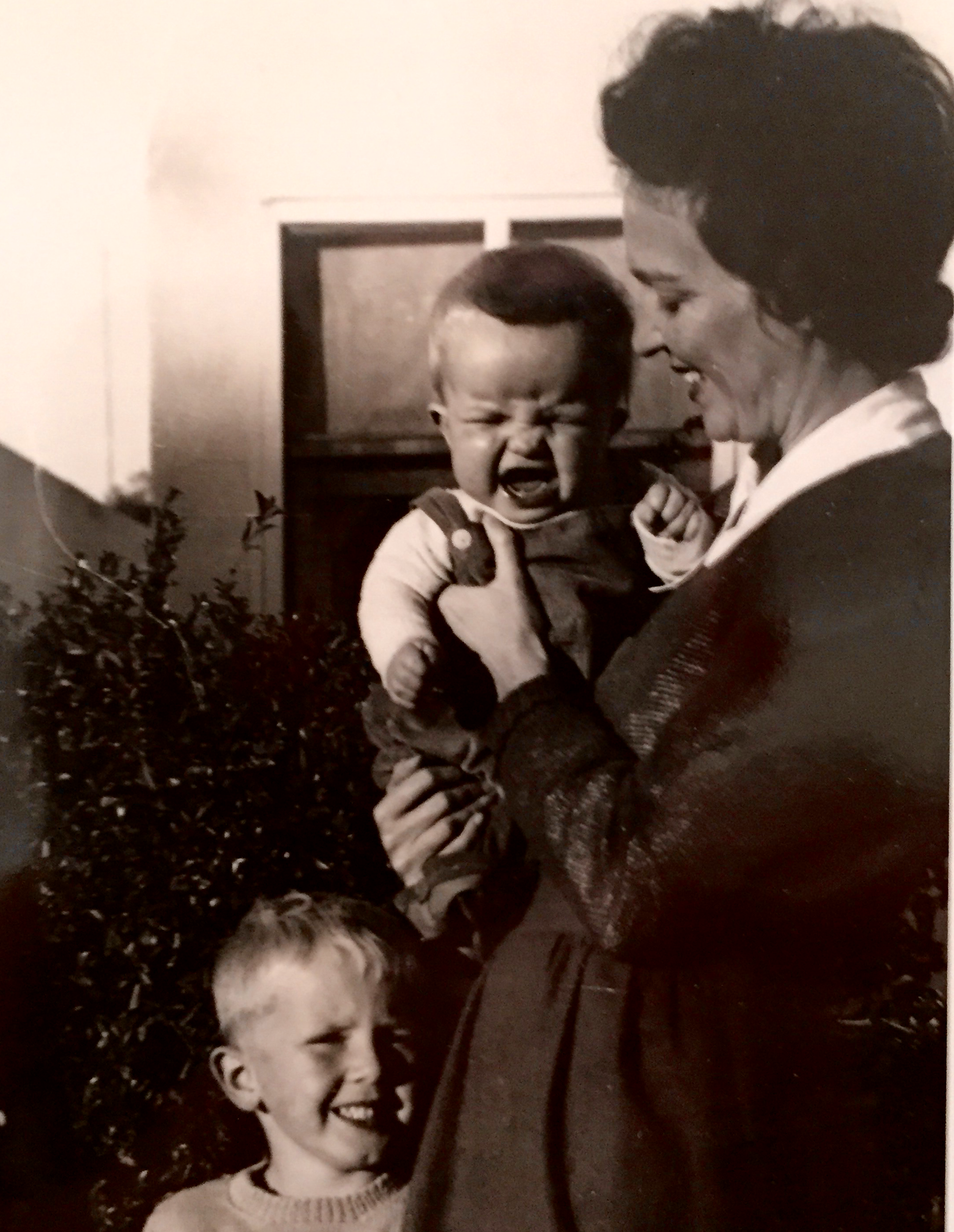 A caregiver assessing my 105-year-old mom could not have pictured all the people living within – the 12-year-old (below) wearing incredible curls in 1924, for example, or the pretty, 32-year-old mom holding her young son (me) at right (below.)