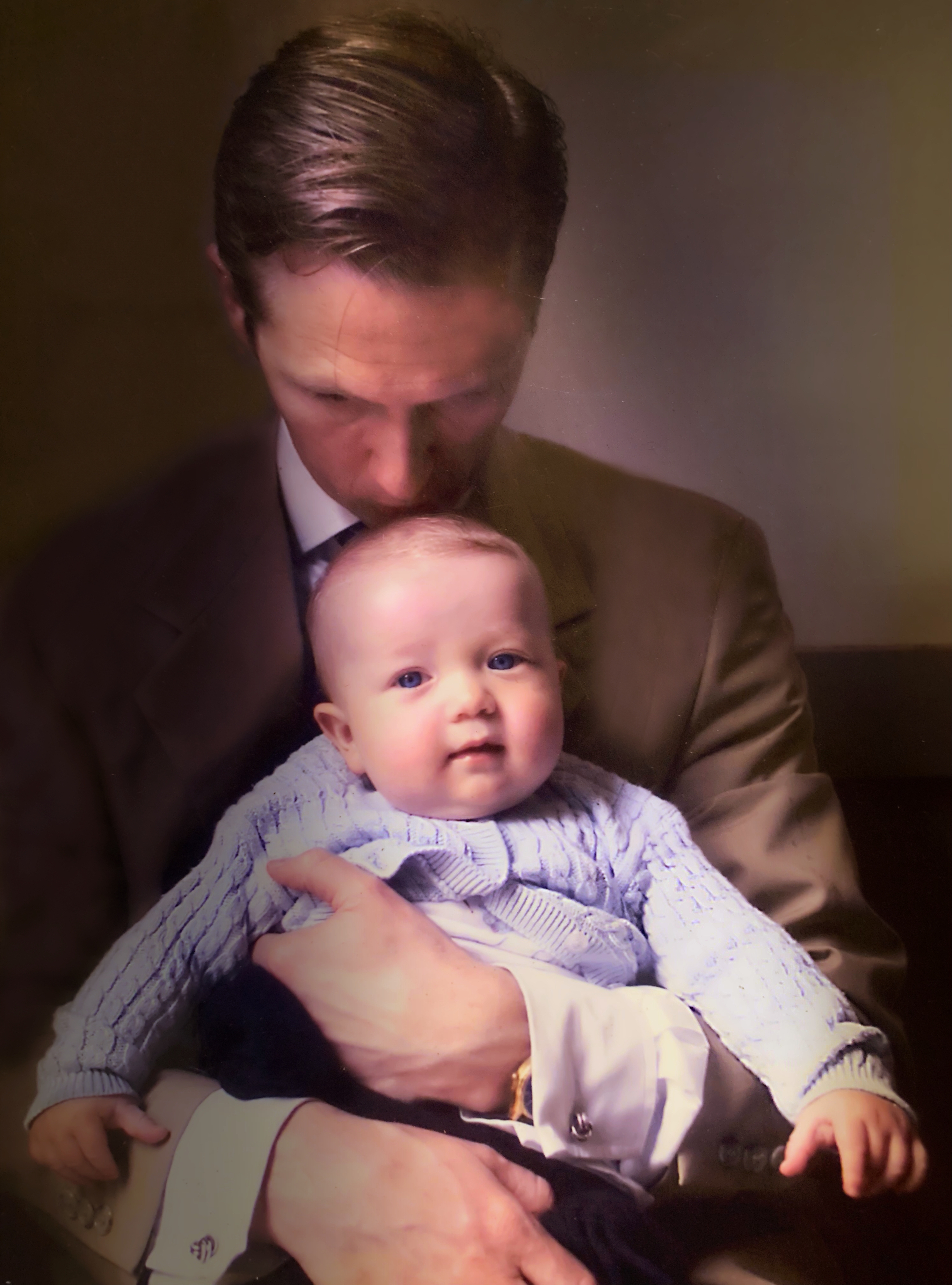 Loving fathers (here, my son kissing his son) lean into the scent of their infant's hair & kiss slowly. When that child is grown they offer the hardest of long kisses: "Goodbyes."