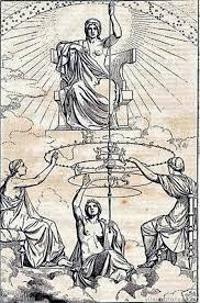 I did not. She sketched a picture simpler than the one here (the only one I could find that suggests the concept.) It showed a stick figure held to the earth by four ropes. Above the person's head ran a thread to the heavens.