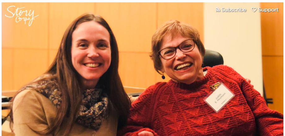 The following is a short StoryCorps segment in which April Coughlin has a conversation with Judith about her journey as a disabled person and  how fought for her rights and the rights of so countless people.
